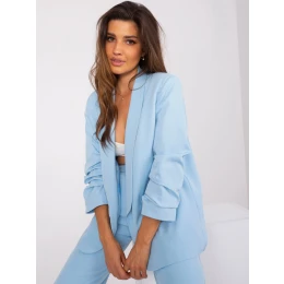 Světle modré dámské sako s 3/4 rukávy .