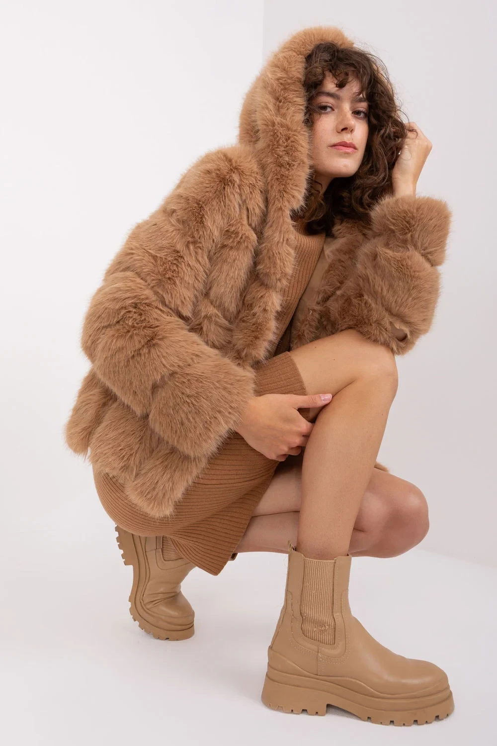 Tato elegantní kožešinová bunda je ideální volbou pro chladnější dny. Její standardní délka a dlouhý rukáv poskytují teplo a pohodlí. Bunda je podšitá pro větší odolnost a pohodlí. Praktickým prvkem jsou kapsy, do kterých můžete uložit drobné předměty nebo si zahřát ruce v chladnějších dnech. Jedná se o přechodnou bundu, která je ideální pro běžné nošení i pro zvláštní příležitosti. Je vybavena kapucí pro větší ochranu před větrem a chladem. Zapínání na suchý zip umožňuje snadné a rychlé oblékání a svlékání. Tato kožešinová bunda je dokonalou kombinací stylu, pohodlí a funkčnosti, která dodá vašemu šatníku eleganci.
