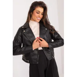 Krátká bunda ramon z ekologické kůže s dlouhými rukávy a zapínáním na zip. Bunda je podšitá, má polstrovaný límec a kapsy na zip po stranách. Návrh na jarně-letní sezónu, ideální pro mnoho příležitostí.