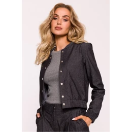 Stylová dámská bunda typu bomber vyrobena z vysokokvalitní bavlněné látky. Zapínání na praktické knoflíky zajišťuje snadné oblékání a sundávání. Bunda má elastický spodek a rukávy, co garantuje perfektní přizpůsobení a komfort nošení. Káro ze žebrování dodává sportovní charakter a navíc chrání proti větru. Chybějící podšívka z ní dělá ideální oblečení na mnoho ročních období. Navržena a ušita v Polsku, kombinující moderní design s funkcionalitou.