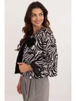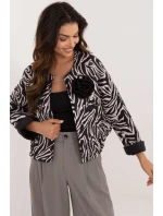 Dámská přechodná bunda v ležérním stylu, ideální pro podzimní, zimní a jarní období. Prošívaná, s jednobarevnou podšívkou, poskytuje lehké pohodlí bez zateplení. Je vyrobena z odolného polyesteru a je ideální pro chladnější dny. Je obohacena decentním zvířecím motivem a ozdobnou černou květinou na úrovni hrudníku, která jí dodává originalitu a styl. Bunda má krátkou délku a dlouhé rukávy a absence zapínání jí dodává moderní, ležérní vzhled. Ideální pro každodenní ležérní nebo pracovní outfity.