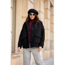 Bunda je vyrobena z módního materiálu z jehněčí kůže, který zaručuje teplo a stylový vzhled. Prošívaná podšívka poskytuje větší pohodlí a teplo bez ohledu na počasí. Na procházce v parku nebo na cestě do práce vás bunda Ivon zahřeje. Klasické zapínání na knoflíky dodává bundě elegantní nádech a zároveň vám umožňuje volně upravovat střih. Velké kapsy s klopou dodávají funkčnost a jedinečný styl. Všechny drobnosti uložíte do prostorných kapes, které jsou nejen praktickým, ale i módním doplňkem. Elegantní límec dodává bundě jedinečný šik nádech, takže se skvěle hodí jak pro běžné, tak formálnější kombinace. Bunda Ivon je must-have této sezóny! Vytvořte si jedinečné outfity kombinací s oblíbenými džínami, látkovými kalhotami nebo vzdušnými šaty. Bunda se hodí na podzimní procházky do parku i na kávu s kamarádkou do kavárny. Výrobek je vyroben a ušit v Polsku.