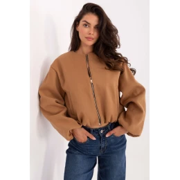 Dámská bunda Casual s krátkým střihem, ideální pro každodenní módní stylizace v přechodném období. Vyrobena z polyesteru s hladkým povrchem a podšívkou, poskytuje pohodlí a pohodlí při nošení. Bez kapuce, zapínání na zip, s praktickými kapsami na zip. Dlouhé nafouklé rukávy dodávají celku moderní charakter a jemně prolomují jednoduchý tvar bundy. Lehké a nezateplené, skvěle doplní každodenní outfit v chladnějších dnech.