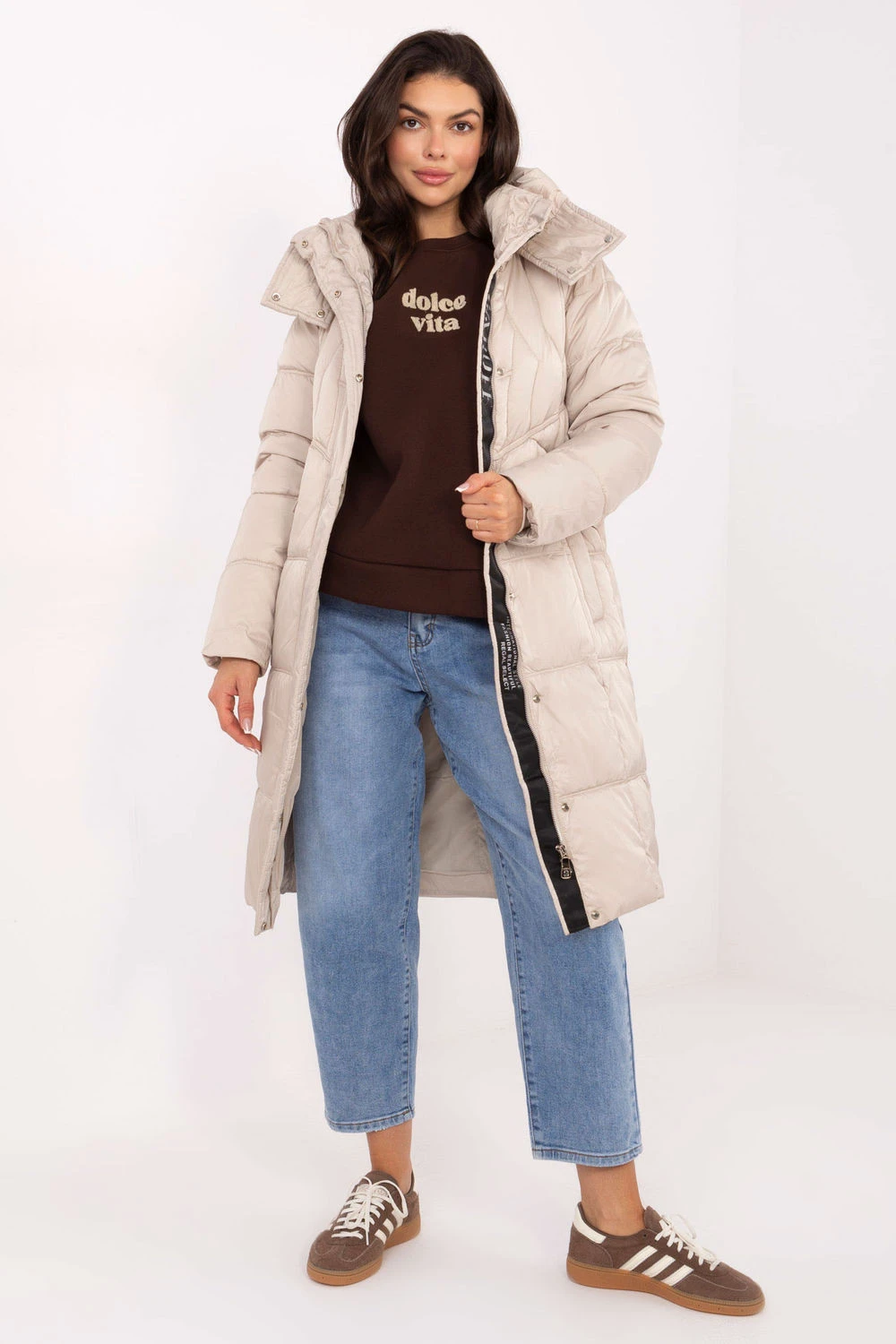 Tato dámská zateplená bunda je spolehlivou volbou na chladné dny podzim/zima. Vyrobena z odolného polyesteru je lehká a zároveň odolná proti větru a vlhkosti. Díky syntetickému plnění a podšívkou s izolací poskytuje vynikající tepelnou izolaci a pohodlí i při nízkých teplotách. Model s prodlouženým střihem účinně chrání proti chladu a prošívaná struktura dodává bundě módní, ženský charakter. Kapuce s možností nastavení poskytuje dodatečnou ochranu proti větru a dešti. Bundu zapínají zipy a knoflíky, co zaručuje plné utěsnění a pohodlí při nošení. Díky vkládaným kapsám je model praktický a ideální pro každodenní styly, skvěle poslouží jak při cestě do práce, tak při procházkách.