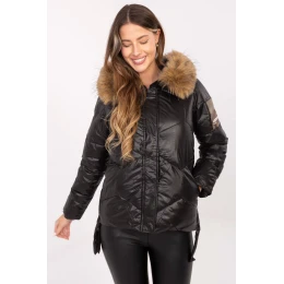 Tento dámský péřový kabát je ideální kombinací stylu, funkčnosti a pohodlí, skvělý na chladné dny podzim/zima. Vyrobený z odolného polyesteru, účinně chrání před větrem a chladem, a syntetické plnění a podšívka s izolací poskytují teplotu a pohodlí i v mrazivém počasí. Model střední délky s prošitým provedením vypadá moderně a žensky. Kapuce s odpínatelným kožešinovým lemem je praktickým detail, který umožňuje přizpůsobit vzhled kabátu příležitosti, ve verzi s kožešinou získává více útulný a elegantní charakter, bez něj vypadá lehce a sportovně. Kabát má zip a knoflíky, co zaručuje další ochranu před zimou, a zasouvací kapsy jsou jak funkční, tak stylové. Je to ideální volba pro každodenní stylizace a do práce, kombinující pohodlí s nadčasovou estetikou.
