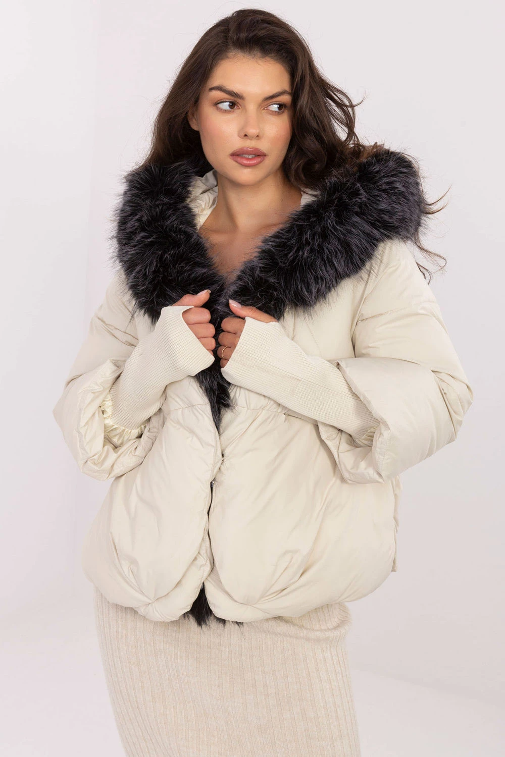 Tato dámská bunda s peřím je ideální volbou na chladné dny podzim/zima, kombinující ležérní styl s funkcionalitou. Skvěle se hodí na každý den i do práce, poskytující ti teplo a módní vzhled. Vyrobená z hladkého polyesteru s syntetickým vyplněním, zaručuje tepelný komfort bez zatížení. Bunda je stehována a má podsívku, co zvyšuje izolaci. Vybavená praktickou kapucí s možností odnímatelného kožichu, co ti umožní přizpůsobit její vzhled tvým preferencím a počasí. Dlouhý rukáv je zakončen širokými, odnímatelnými manžetami, co představuje módní akcent a zároveň chrání před chladem. Standardní délka z ní činí univerzální a hodí se k většině postav. Zapíná se na suchý zip pro lepší ochranu před teplem. Má pohodlné kapsy s krytým zipem, ideální k ohřátí rukou.