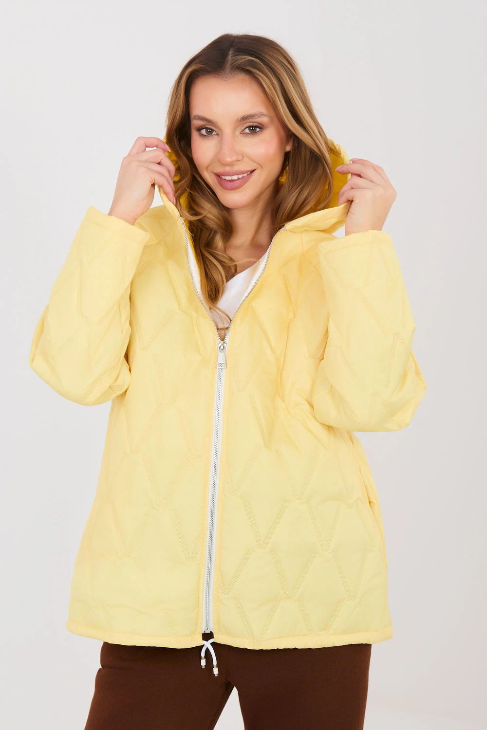 Lehká, prošívaná dámská bunda ideální na jarní a letní dny. Její hladký vzor a standardní délka jsou skvělé pro každodenní, ležérní outfit. Vyrobená z odolného polyesteru, bez dalšího podšívání, co ji činí ideální jako přechodná bunda. S dlouhým rukávem, kapucí a zipem pro pohodlí a ochranu před větrem. Praktické kapsy a decentní nášivka na rukávu zdůrazňují módní, ležérní charakter. Prošívaný vzor přidává styl a lehkost, zatímco lehká konstrukce dělá bundu pohodlnou a snadnou na nošení každý den.