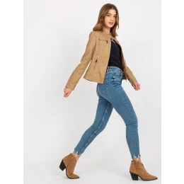 Světlá motorkářská bunda z ekokůže s podšívkou .