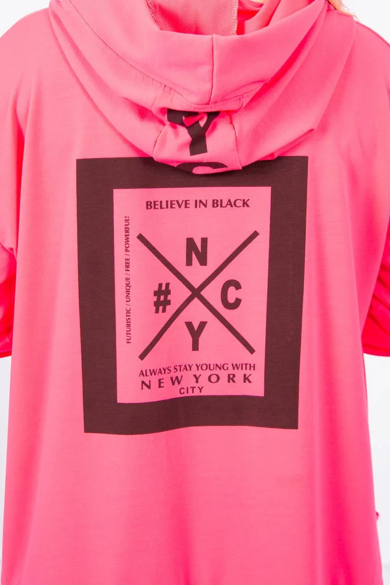 Bunda oversize s kapucí růžová neonová