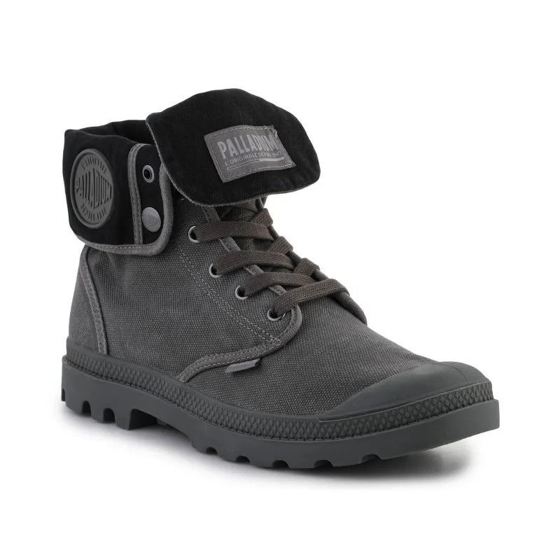 - Palladium Baggy má vysoký, ohrnutý svršek z odolného textilu a kulatou vyztuženou přední část