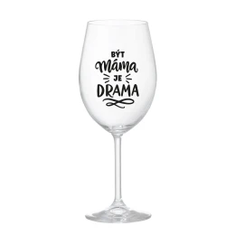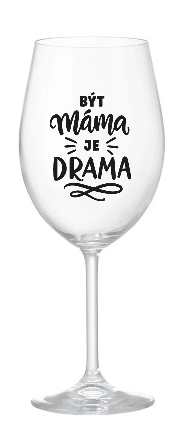 BÝT MÁMA JE DRAMA - čirá sklenice na víno 350 ml