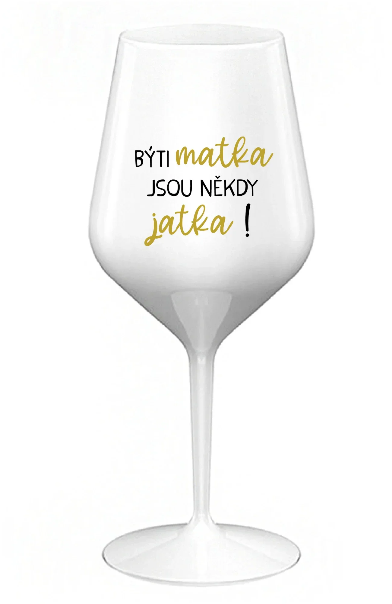 BÝTI MATKA JSOU NĚKDY JATKA! - biely nerozbitný pohár na víno 470 ml