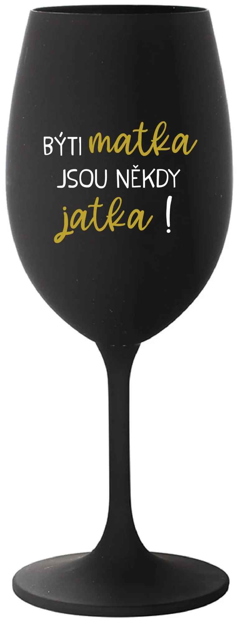 BÝTI MATKA JSOU NĚKDY JATKA! - černá sklenice na víno 350 ml