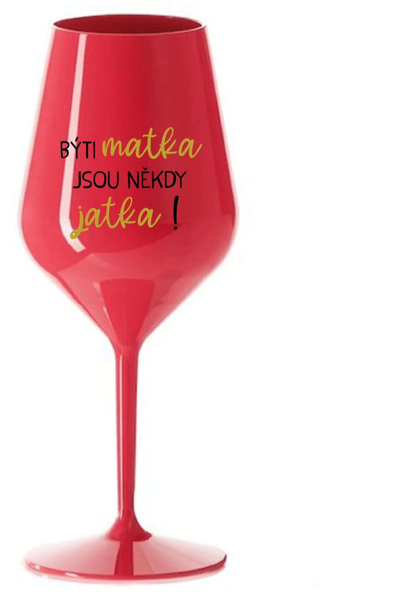 BÝTI MATKA JSOU NĚKDY JATKA! - červená nerozbitná sklenice na víno 470 ml