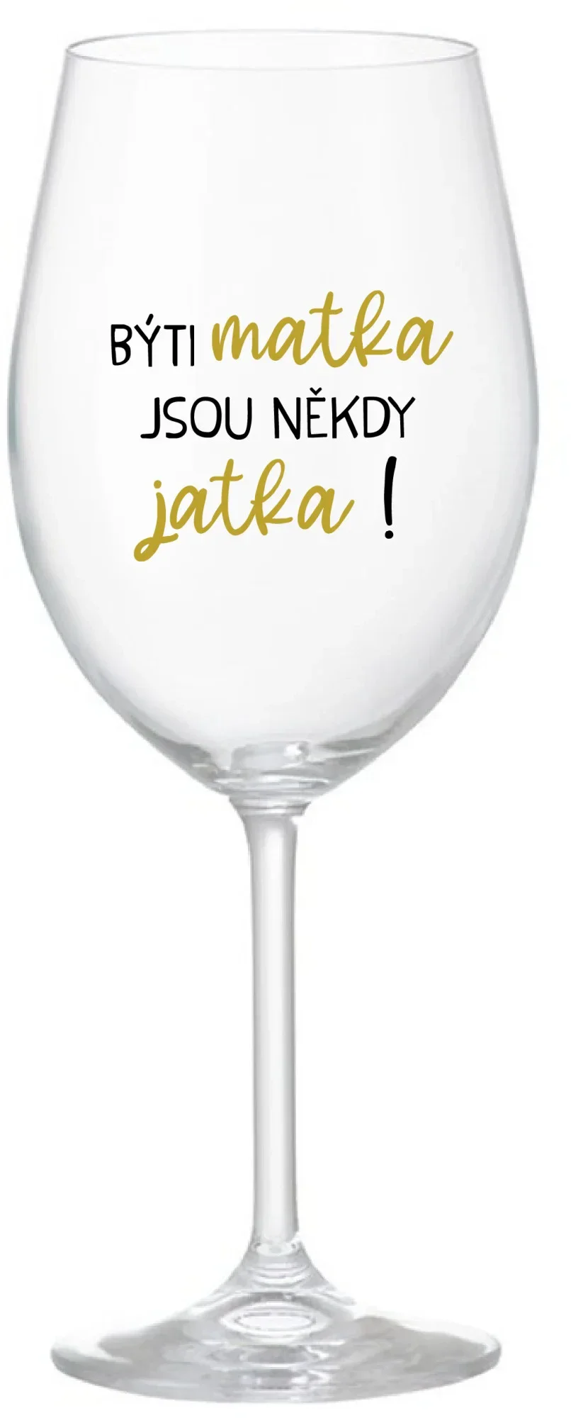 Vinná čirá sklenice s originálním motivem BÝTI MATKA JSOU NĚKDY JATKA! je krásným a osobitým dárkem, které ale využijete i Vy sami třeba ve chvílích, kdy si budete chtít zpříjemnit náročný den. Tyto originální vinné sklenice jsou totiž nejen pro výjimečné události, ale i pro běžné večery, které si chcete zpříjemnit sklenkou dobrého vína. Jistě proto potěší každého milovníka vína, i toho, kdo si umí svůj život vychutnat plnými doušky.