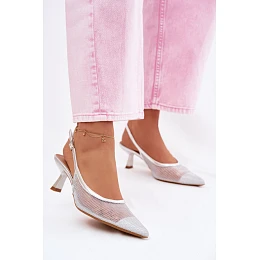 Calora Stříbrné Síťované Sandály Na Úzkém Podpatku