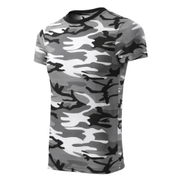 střih s bočními švy úzký lem průkrčníku z žebrového úpletu 1:1 s 5 % elastanu zpevňující páska od ramene k rameni v barvě camouflage