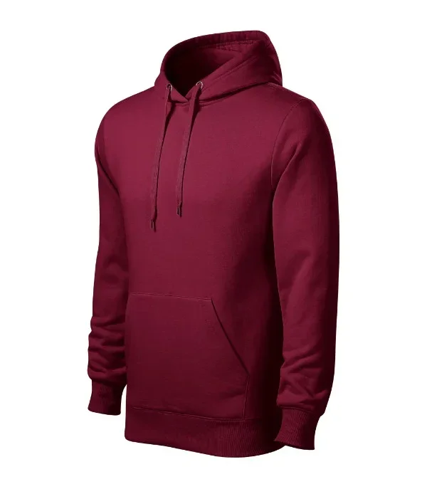 rovný střih s bočními švy kapuce s podšívkou, na stažení šňůrkou vnitřní část průkrčníku začištěna páskou v barvě vrchového materiálu nakládaná kapsa ve stylu klokanky dolní lem a manžety rukávů z žebrového úpletu 2:2 s 5 % elastanu vnitřní strana počesaná