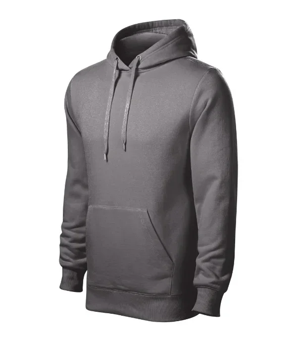 rovný střih s bočními švy kapuce s podšívkou, na stažení šňůrkou vnitřní část průkrčníku začištěna páskou v barvě vrchového materiálu nakládaná kapsa ve stylu klokanky dolní lem a manžety rukávů z žebrového úpletu 2:2 s 5 % elastanu vnitřní strana počesaná