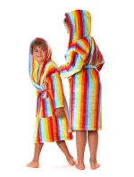 Tento veselý župan s kapucí v jasných duhových barvách je tím pravým parťákem pro chladné večery a studená rána.