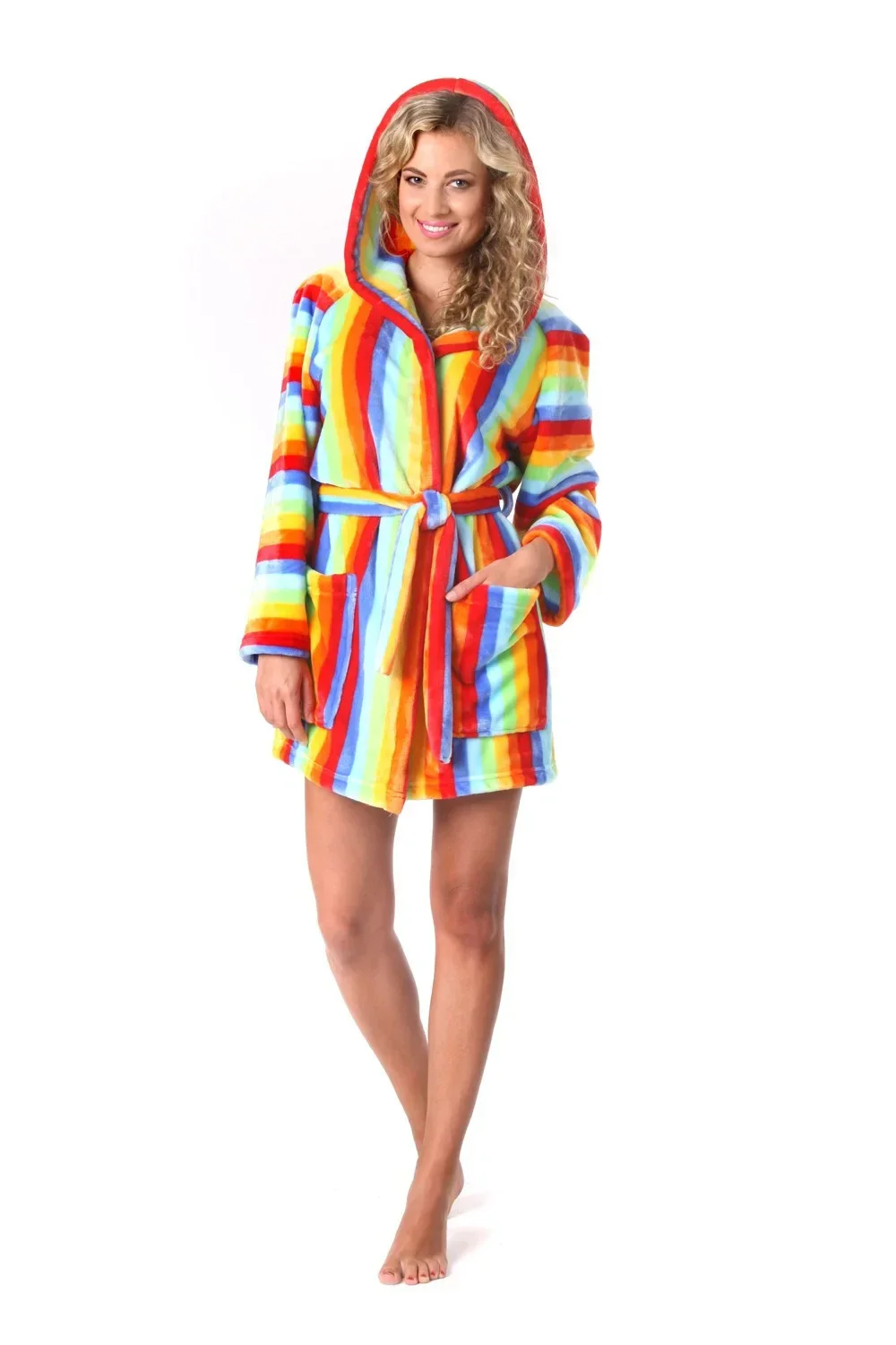 Župany Capri jsou ideální pro chvíle odpočinku a relaxace. Posnídejte ve veselých duhových barvách a vaše ráno bude hned příjemnější. Materiál má krátký hustý , velmi jemný vlas s příjemně hebkým povrchem, je splývavý, má krásný lesk. Nemačká se, je stálobarevný a drží tvar. Perte běžně na 40st a sušte na nízký teplotní stupeň.