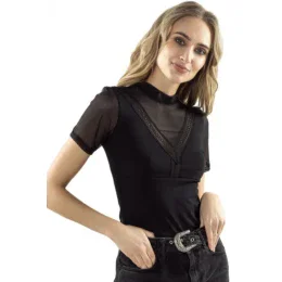Dámská viskózová halenka s krátkými rukávy a stó. Tylový výstřih a rukávy.