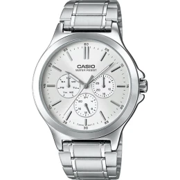 Casio MTP-VD300-7BUDF jsou pánské hodinky s nadčasovým charakterem, které se vyznačují elegantním bílým ciferníkem se třemi funkčními subciferníky - ukazatelem dne v týdnu, data a 24hodinového času. Robustní ocelové pouzdro v kombinaci s náramkem vytváří, stylový komplet, který se bude hodit jak pro každodenní použití, tak pro formálnější příležitosti. Minerální sklíčko poskytuje ochranu proti poškrábání a přesný quartzový strojek zaručuje spolehlivý chod. Hodinky mají standardní vodotěsnost WR, což znamená, že si poradí i s náhodným postříkáním vodou. Jedná se o dokonalou kombinaci jednoduchosti, třídy a praktických řešení v cenově dostupné podobě.