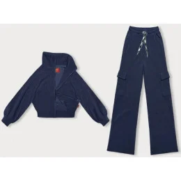 Tmavě modrý casual komplet s kalhotami typu cargo (AMG-338A)