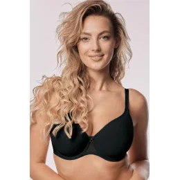 Biustonosz Celine czarny typu Spacer to kwintesencja komfortu i elegancji. Dzięki innowacyjnej miseczce typu Spacer, zapewnia wyjątkową lekkość i oddychalność, idealną na ciepłe dni. Bezszwowa kopa delikatnie modeluje biust, nie odznaczając się pod ubraniem, a miękkie boczki z podwójnej siateczki – pozbawione fiszbin – dbają o wygodę przez cały dzień. Regulowane, nieodpinane ramiączka oraz zapięcie na dwie haftki (w dwóch lub trzech rzędach) gwarantują indywidualne dopasowanie. To doskonały wybór dla kobiet szukających nowoczesnego biustonosza o lekkiej, a jednocześnie stabilnej konstrukcji.
