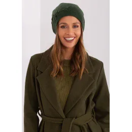 Hřejivá dámská zimní čepice z hladkého úpletu s ozdobnou aplikací na boku.
