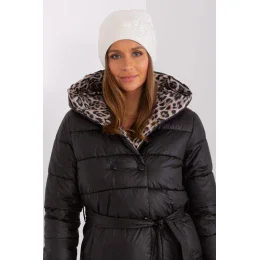 Hřejivá dámská zimní čepice z kašmíru s ozdobnou kamínkovou aplikací.