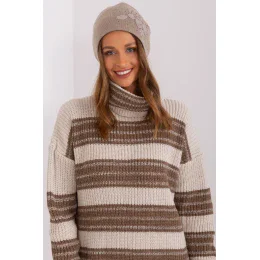 Hřejivá dámská zimní čepice z kašmíru s ozdobnou kamínkovou aplikací.