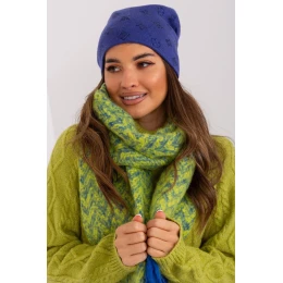 Teplá zimní dámská čepice typu beanie s přídavkem kaschmiru, s ozdobnou aplikací z jete.