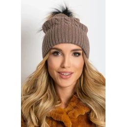 Zimní čepice s širokým lemem a chlupatým bumbálkem.