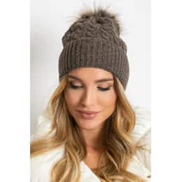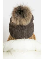 Zimní čepice s širokým lemem a chlupatým bílým bóbrem.