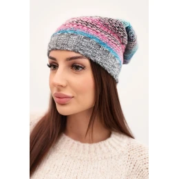 Čepice s fleecem Krystyna K207 šedá+tmavě růžová