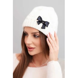 Dámská zimní čepice s ozdobnou mašlí a copánkovým vzorem K438 ecru