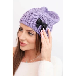 Dámská zimní čepice s ozdobnou mašlí a pleteným vzorem K438 světle fialová