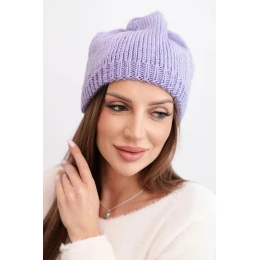 Dámská zimní čepice s ušima a žebrovaným vzorem K440 fialová