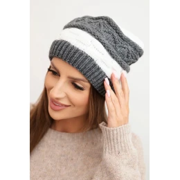 Dámská zimní čepice z vlny s ozdobným vzorem K446 grafitová + bílá