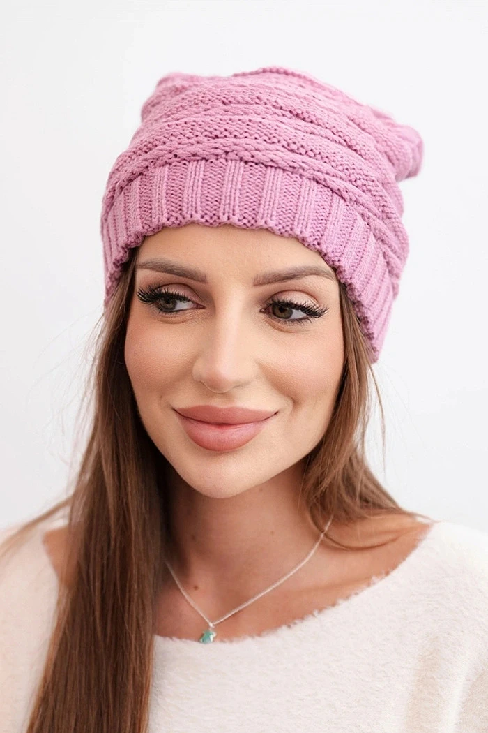 Dámská zimní čepice s klasickým žebrovaným vzorem K439 světle fialová