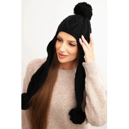 Dámská zimní pletená čepice s bambulemi a prodlouženými boky K448 černá