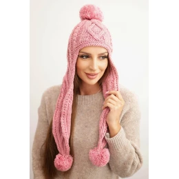 Dámská zimní čepice z vlny s bambulemi a prodlouženými boky K448 růžová