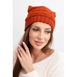 Dámská zimní čepice s klasickým ribkovaným pletením K439 hnědá
