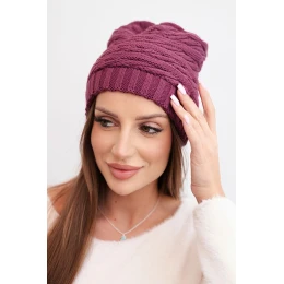 Dámská zimní čepice s klasickým žebrovaným pletením K439 tmavě fialová