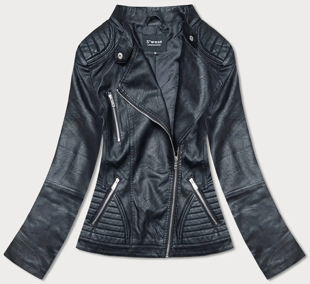 Bunda je lehce vypasovaná, má délku k bokům a zapíná se zipem. Model má dvě kapsy se zapínáním na zip. Všechny zipy mají stříbrnou barvu. Bunda má podšívku a na několika místech je prošívaná.