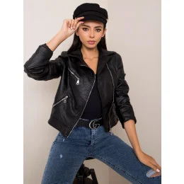 Černá oversize bunda z ekologické kůže (AG1-J9080)