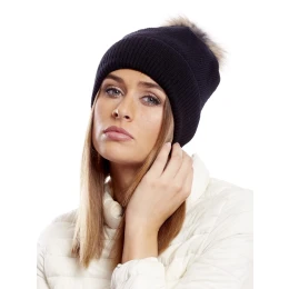 Čepice s chlupatou bambulí černá