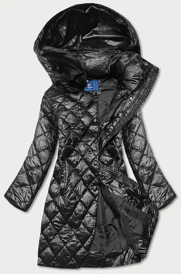 Černá dámská bunda s kožíškovým límcem (J9-068)