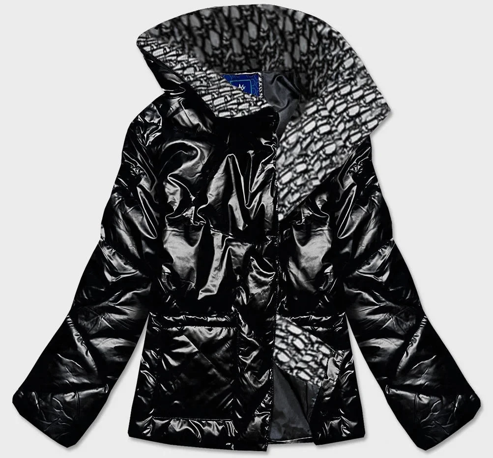 Bunda je lehce zateplená, má délku k bokům a zapíná se patentkami. Model má přeložený obálkový límec a dvě kapsy.